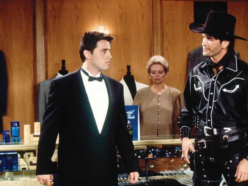 - В ролях актеры:Дженнифер Энистон, Кортни Кокс, Лиза Кудроу, Мэтт ЛеБлан, Мэттью Перри, Дэвид Швиммер, Джеймс Майкл Тайлер, Эллиотт Гулд, Кристина Пиклз, Мэгги Уилер